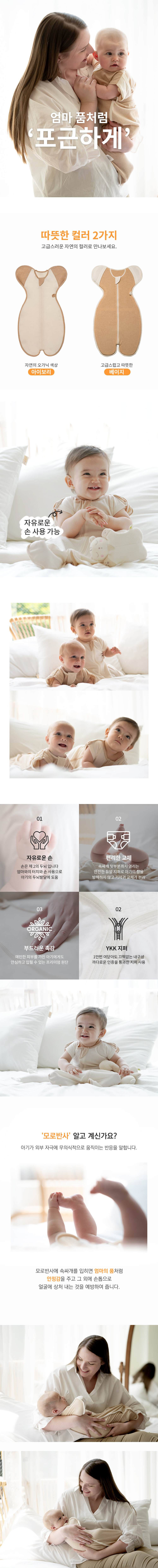 부드럽고 얇은 4계절용 한겹 원단으로 신축성이 좋고 태열있는 아기에게 좋아요.